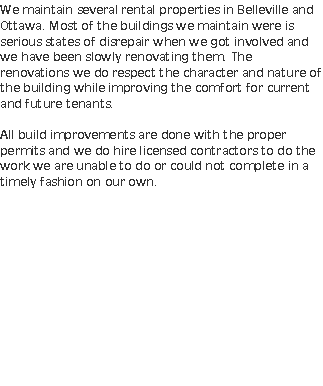 We restore and renovate old buildings, extending their useful contribution to the neighborhood.